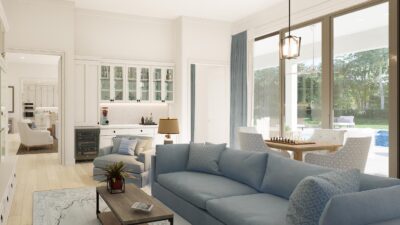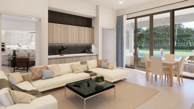 Inside, the home offers 5 bedrooms and 6 bathrooms, including a dedicated cabana bath. An expansive club room provides the perfect space for media, game nights, or a private gym. The chef’s kitchen features an oversized island, a walk-in pantry, and premium stainless steel Jenn-Air appliances, creating a true culinary centerpiece. Outdoors, a luxury pool completes the experience, offering the ultimate in South Florida outdoor living.