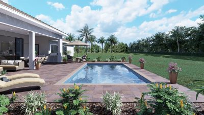 LUXURY NEW HOME NOW UNDER CONSTRUCTION at Flamingo Ranch Estates, a secluded enclave with NO HOA in Davie. Estimated Delivery ~APRIL 2024. Flamingo Ranch Estates is luxury country living with easy access to everywhere you need to be in the tri-county area. This expansive floor plan provides 4 bedrooms with 5.5 baths, an office, a huge multi purpose Club Room, a private, separate in-law suite with its own entrance and kitchenette, perfect for a multifamily living arrangement or a private office space – it offers unlimited potential! Spectacular kitchen has large island, walk in pantry and SS Jenn Aire appliances. Huge primary suite with sitting area has a dream bath with wet room 2 person shower & free standing tub. Quartz counters throughout, 8 x 48 wood plank porcelain floors throughout. Luxury 15 x 30 pool included.
